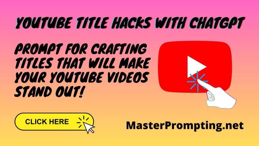 ChatGPT can generate catchy and effective YouTube video titles that attract viewers and increase click-through rates. By providing clear prompts, such as a video topic or target audience, ChatGPT can develop personalized titles that suit the style and preferences of the intended audience. With its advanced language processing capabilities, ChatGPT can create a variety of unique and compelling titles that stand out from the competition, resulting in increased engagement and views.